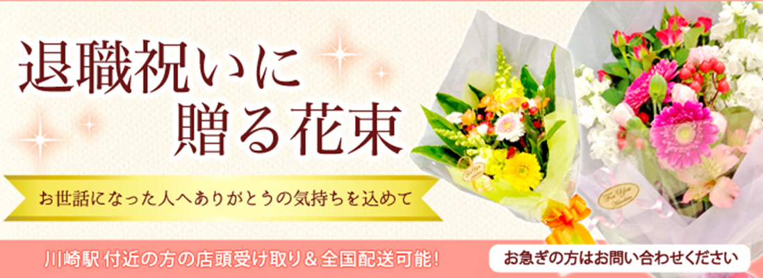 - 2023/05/19 お客様から退職祝用花束のご注文をいただき、川崎区宮本町に配達いたしました。